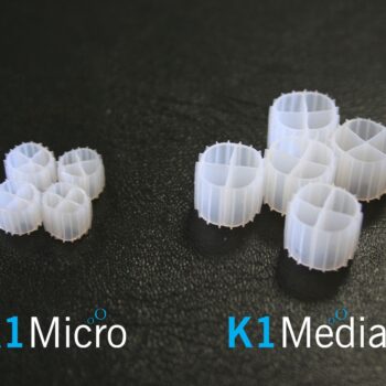 The small wheel shaped filter media pieces provide a significantly increased protected surface area per cubic metre when compared to standard K1 for bacteria to colonise.