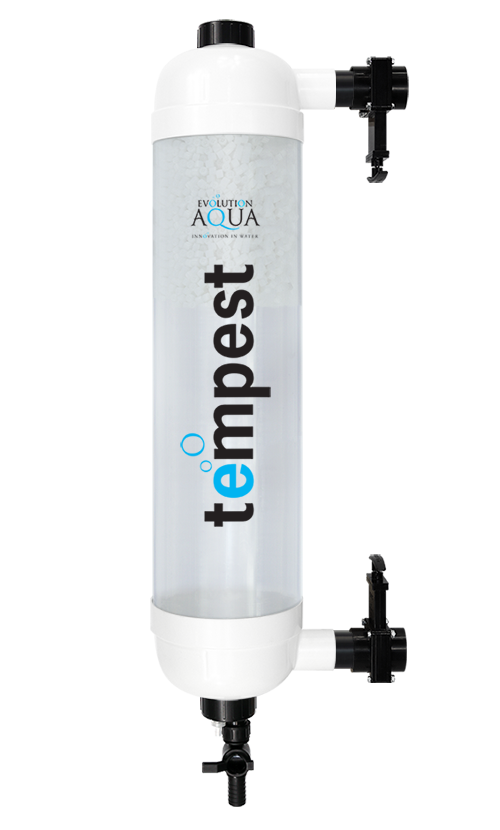The Tempest filter is easy to install and is simple and quick to clean, by way of a unique, patent pending air syphon design. During the cleaning process, air is drawn into the filter as it empties which causes the water to agitate, effectively cleaning the K+Media.